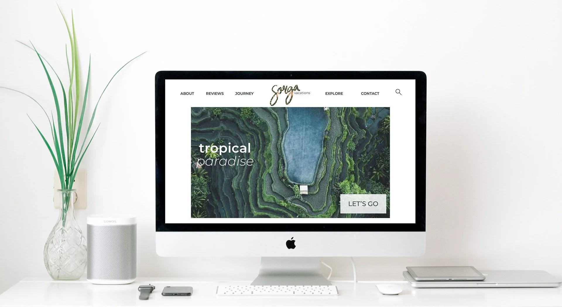 Sorga Vacations Travel AgencySorga, meaning paradise in Balinese, is the perfect name for a travel company specializing in trips to Bali. This brand was inspired by the lush jungle and island vibes.